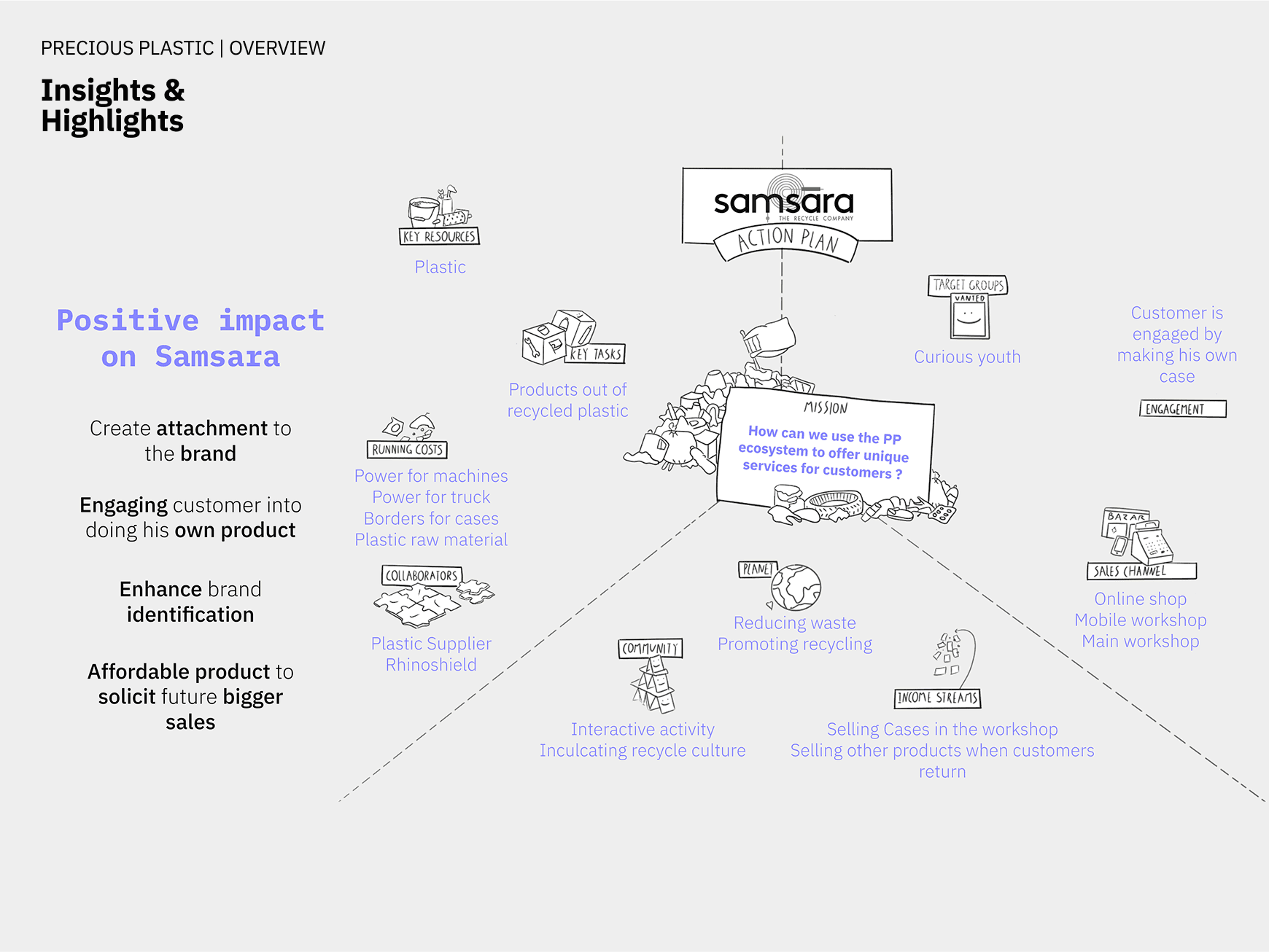 We worked with Precious Plastic (open-source creative platform to fight against plastic waste) and Samsara (Indian recycle company transforming recycled plastic into high quality products).